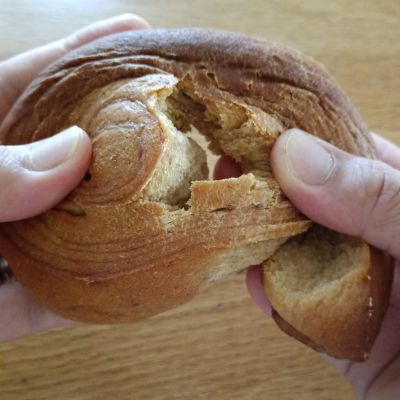 他のベースブレッドと同じように、もっちり食感でよく噛んで食べることができて満腹感を得られやすいです。