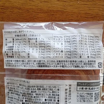 ベースブレッドさつまいも栄養素