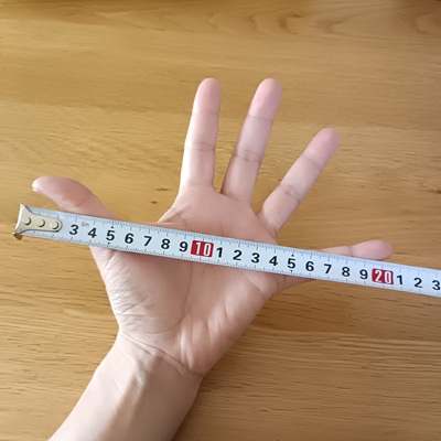 個人差はありますが、手のひらを広げて親指~小指の先までがだいたい20cmくらいなのでそのくらい離してプッシュしてください。