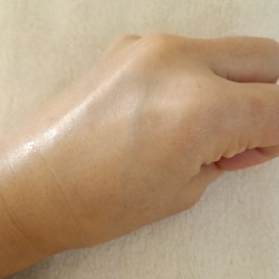 ミストを手の甲にのせてみると、直後はこんなにツヤっぽい。